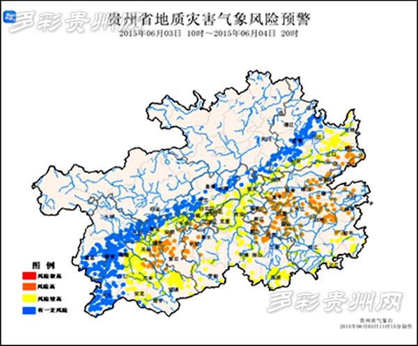 6月3日10时至4日20时全省山洪气象风险预警图(贵州省气象台 供图)