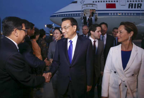 中新网巴黎6月30日电(记者 欧阳开宇) 李克强总理29日晚10时许乘专机抵达巴黎,开启中国总理十年来对法首次正式访问。李克强此访受到高规格接待,法国总统奥朗德将举行欢迎午宴,总理瓦尔斯将在荣军院举行欢迎仪式并陪同赴图卢兹访问。期间,中法有望在核能合作和共同开发第三方市场方面达成协议。