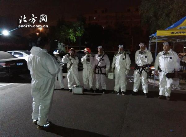 时间比预计的更长,直到下午2点半,夏金凯他们才返回驻地。“实在是太大了,里面气味刺鼻,烟雾刺眼,而且四周不断在发生小爆炸。眼药水发完了,我们还没找到全部的小分队,等会再送一次。”29岁的夏金凯一边说着,一边脱下防护服。由于来回的跑动,加上高温闷热,队员们的衣服裤子全部湿透。当大伙摘下橡胶手套的时候,北方网新媒体记者注意到,队员们手上的皮已经被汗水浸得发皱。