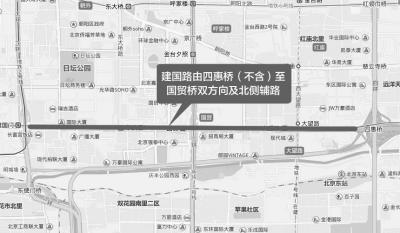 9月3日0时至活动结束,建国路由四惠桥(不含)至国贸桥双向主路及北侧辅路,除持有纪念大会专用证件的车辆和人员外,禁止其他车辆和行人通行。(图⑤)