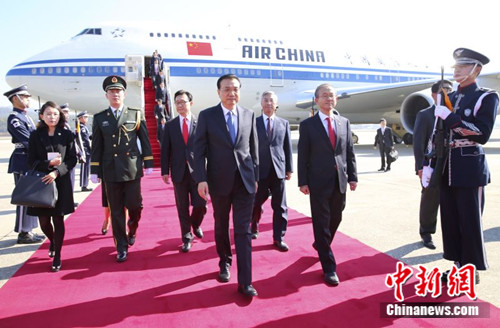 中新网首尔10月31日电(记者 郭金超) 当地时间10月31日11时50分,李克强总理乘专机抵达首尔城南机场,开始对韩国进行正式访问。韩国政府高级官员在机场迎候。