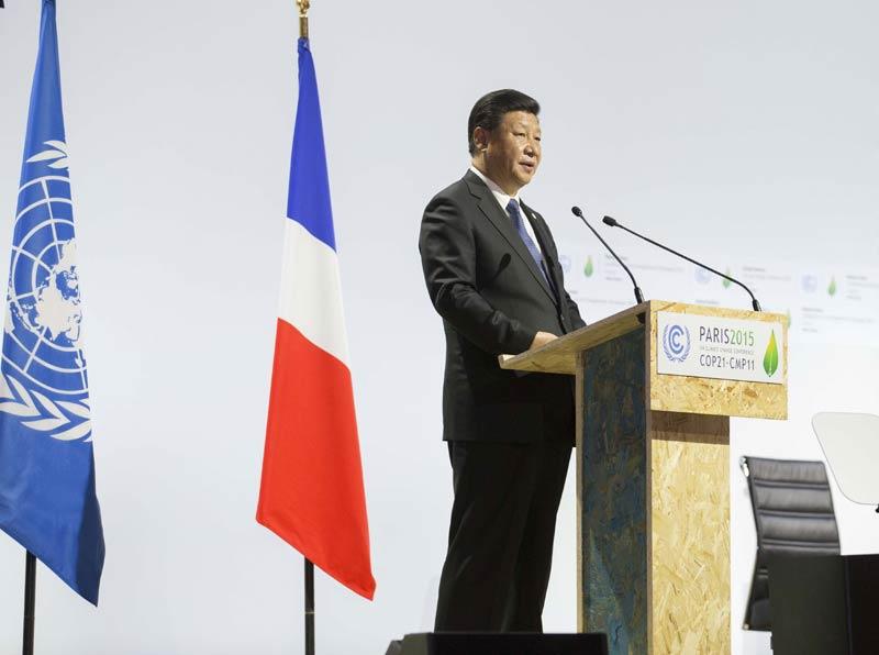 2015年11月29日至30日,习近平与全球150多个国家领导人一起应邀出席气候变化巴黎大会开幕活动。30个小时,多场双边会谈,与各国领导人深入交换意见。在开幕式上,习近平第五个走上讲台并发表了《携手构建合作共赢、公平合理的气候变化治理机制》的重要讲话。