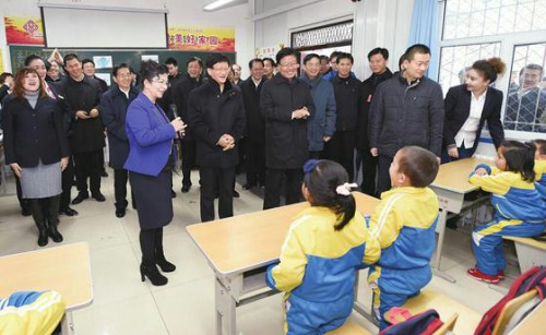 沙依巴克区平顶山社区针对少数民族务工人员多、流动性大等情况,对社区实施“庭院化”管理。根据流动人口语言、教育、医疗、日常生活等方面的需求,社区开办了幼儿学校、汉语扫盲班、手工技能培训学校,建立了社区卫生点、蔬菜直销点,并引入社会企业进社区设置就业培训点,着力帮助居民解决就业培训、幼儿教育等问题。在幼儿学校,来自不同民族家庭的孩子们正在老师带领下进行双语教学。孟建柱一行的到来,让孩子们十分兴奋,他们欢快地唱起了歌曲《歌唱祖国》。孟建柱为孩子们打着节拍,鼓励孩子们好好学习,健康成长。在蔬菜直销点,前来买菜的居民告诉孟建柱,这里的蔬菜价格公道,购买方便。在绢花、服装就业培训班,孟建柱向学员们了解学习、收入情况。得知原来足不出户的少数民族妇女,如今通过技能培训,走出家门就业,有了稳定的收入,孟建柱非常高兴,祝愿她们通过勤劳的双手让家庭过上更幸福的生活。