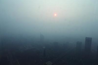 今天上午,记者来到国贸三期80层,室外能见度低 摄/记者 杨益