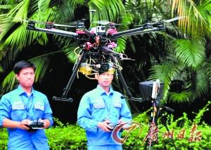 广州供电局用喷火式无人机来清除悬挂物。