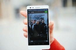 4、太原一市民向记者展示手机中拍摄的总理照片