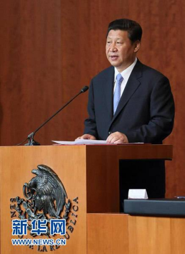 2013年6月5日,正在墨西哥进行国事访问的国家主席习近平在墨西哥参议院发表题为《促进共同发展 共创美好未来》的演讲。 新华社记者 兰红光 摄