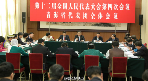 3月10日上午,中共中央总书记、国家主席、中央军委主席习近平来到十二届全国人大四次会议青海代表团参加审议。