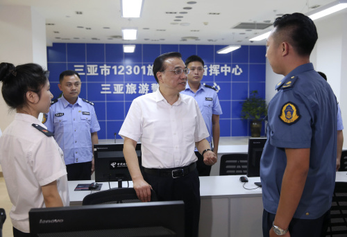 22日下午,李克强来到三亚市民游客中心考察海南国际旅游岛建设及服务创新等情况。