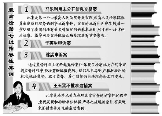 6月6日,最高人民检察院发布第七批指导性案例,包括马乐利用未公开信息交易案,于英生申诉案,陈满申诉案,王玉雷不批准逮捕案。