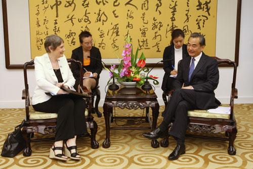 2016年6月15日,外交部长王毅会见下任联合国秘书长候选人、联合国开发计划署署长、新西兰前总理克拉克。