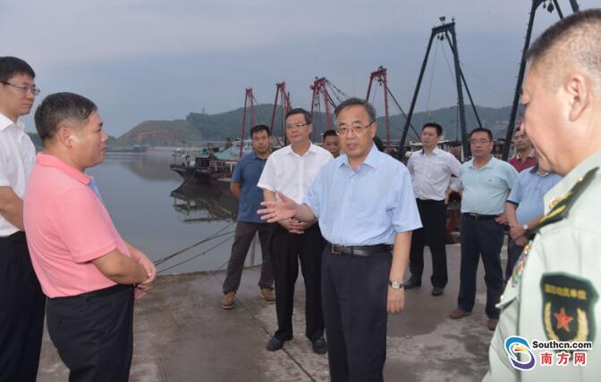 胡春华在东莞新湾社区渔政码头检查台风“妮妲”防御工作