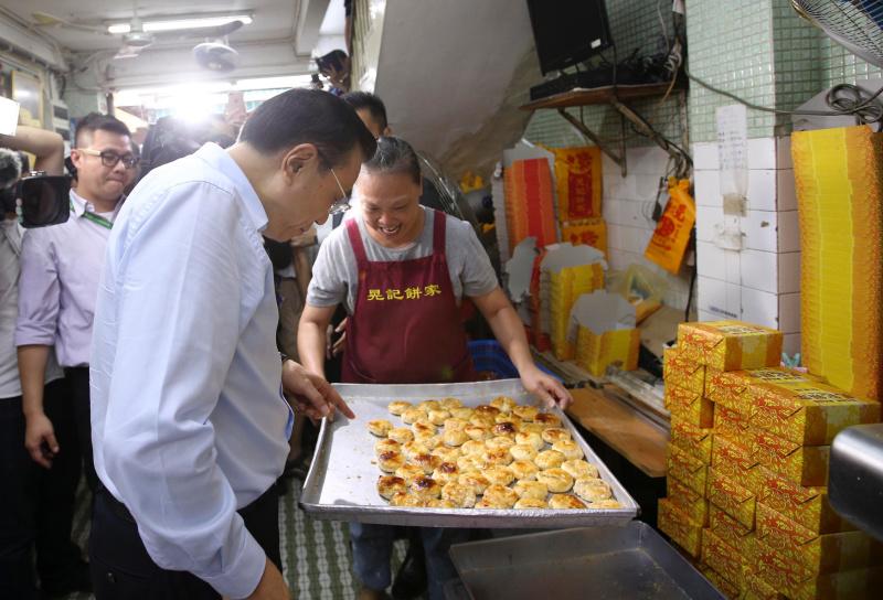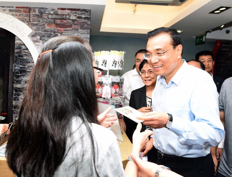 李克强11日下午来到澳门氹仔市区最热闹的官也街。这条长约百米的老街汇聚中餐厅、葡国餐厅和售卖当地特产的手信店,澳门风情浓郁。看到总理到来,当地市民和游客欢呼着争相与他握手自拍。李克强随意走进几家店铺询问店主经营状况,并买了一盒蛋挞、一盒金桃酥和一张明信片。