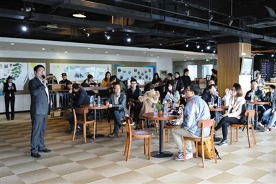 11月2日,位于杭州的海创基地。工作人员正在向访客介绍,这里每周二都会举办“六和桥”投融资沙龙,为创业者找资金,为投资者找项目。