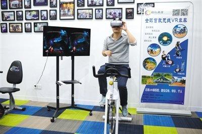 11月2日,位于杭州的海创基地,访客在体验该基地孵化企业研制的全球首款无线VR单车。