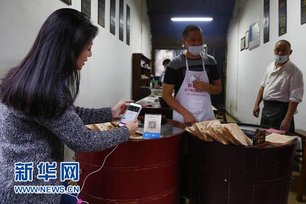 资料图:在浙江乌镇,一名游客通过手机应用为商家付款(2016年11月7日摄)。 新华社记者荣浩摄