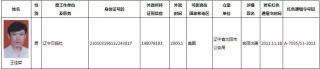 王佳哲,男,1961年12月出生,辽宁日报社原工作人员,涉嫌合同诈骗犯罪,2000年1月逃往美国,国际刑警组织红色通缉令号码A-7035/11-2011。(辽宁省纪委)