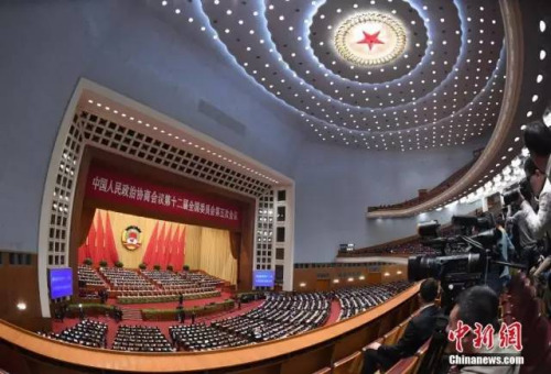 3月13日,全国政协十二届五次会议在人民大会堂举行闭幕会,全国政协主席俞正声发表讲话。中新社记者 侯宇 摄