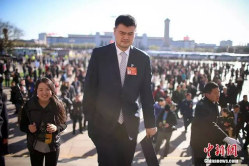 姚明委员步入会场。 中新社记者 刘震 摄