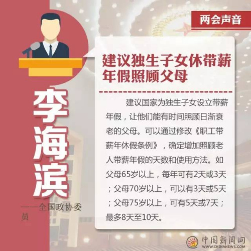 两会晨报:委员建议独生子女休带薪年假照顾父母