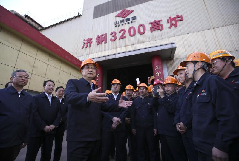 李克强走进济南钢铁公司,听取山东钢铁去产能汇报,他对围拢过来的员工说,济钢为国家建设做出过贡献,化解过剩产能要付出一些代价,中央和地方都要支持,大家一起努力,确保分流职工转岗不下岗,生活有保障。