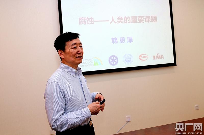 世界腐蚀组织主席、中国科学院沈阳分院院长、中国科学院金属研究所研究员韩恩厚(央广记者黄光辉摄)