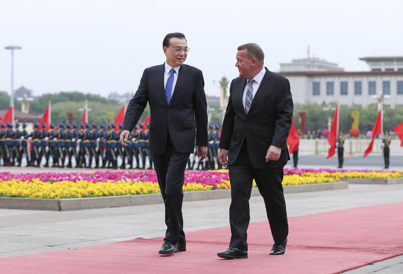 国务院总理李克强5月3日下午在人民大会堂同来华进行正式访问的丹麦首相拉斯穆森举行会谈。