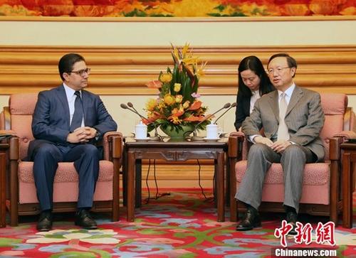 11月17日,中共中央政治局委员、国务委员杨洁篪在北京会见摩洛哥外交与国际合作大臣布里达。中新社记者 宋吉河 摄