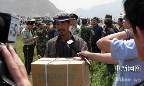 陇南灾区收到兰州军区空军某部空投的物资。 张晟福 侯志雄 摄影