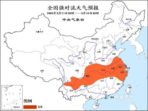 8月15日8时—8月16日8时全国强对流天气预报图