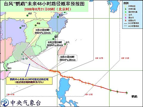 8月21日05时台风“鹦鹉”未来48小时路径概率预报图