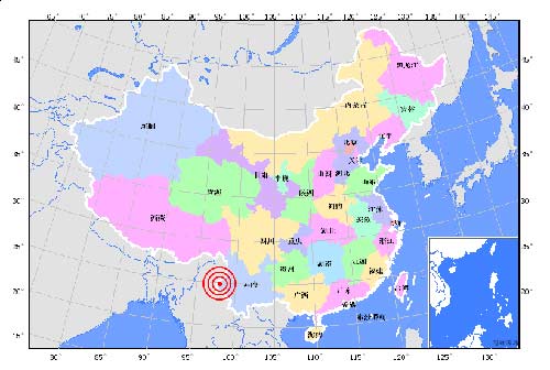 震源深度约10公里,震中距盈江县城约45公里,距昆明市约500公里。