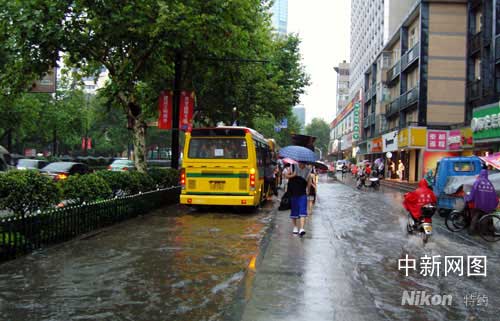 中新网杭州8月22日电(记者 龚读法 实习生 王磊)8月22日下午1点30分左右,浙江省杭州市也遭遇入秋以来最强降雨,顿时电闪雷鸣,百昼如夜,短短1个小时内,路面已经完全被雨水淹没。