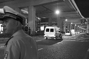 庭审结束后,警方车队离开法院。吕宗恕 摄