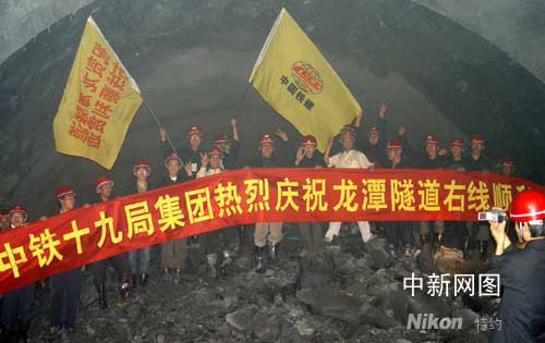 中新网宜昌9月5日电(刘良伟 刘涛 左发春)今日上午10时,有着公路隧道长度全国第三、独头掘进里程全国第一、湖北省最长公路隧道之称的沪蓉西高速龙潭隧道右线胜利贯通。