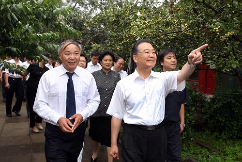 9月9日,中共中央政治局常委、国务院总理温家宝邀请8位来自基层的中小学教师参观北京中南海,并进行座谈。这是座谈会前,温家宝在中共中央政治局委员、国务委员刘延东的陪同下,和教师们一起参观西花厅。新华社记者 姚大伟 摄