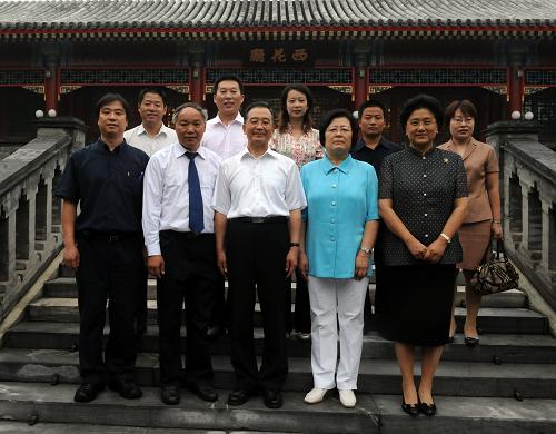 温家宝和中共中央政治局委员、国务委员刘延东,与教师们一起在西花厅前合影。新华社记者 李学仁 摄
