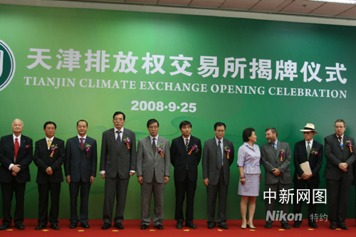 9月25日,由中油资产管理有限公司、天津产权交易中心和芝加哥气候交易所三方出资设立的天津排放权交易所,在天津滨海新区揭牌。 田齐 摄