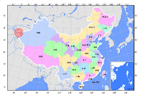 中新网10月14日电 据中国地震台网测定,北京时间2008年10月14日0时5分许,在中、塔、吉交界地区(北纬39.5,东经73.7) 发生5.3级地震。