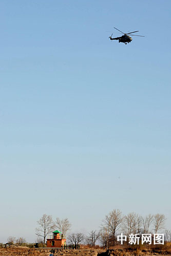 14日上午,有关人员乘直升机抵达黑瞎子岛参加中俄界桩揭幕仪式。作 者:吴兆飞