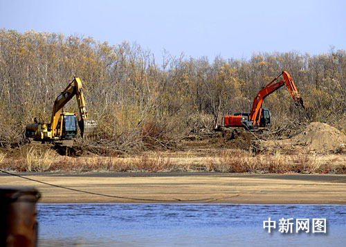 黑瞎子岛中俄边界确定后,中方大型机械登岛修路。作 者:吴兆飞