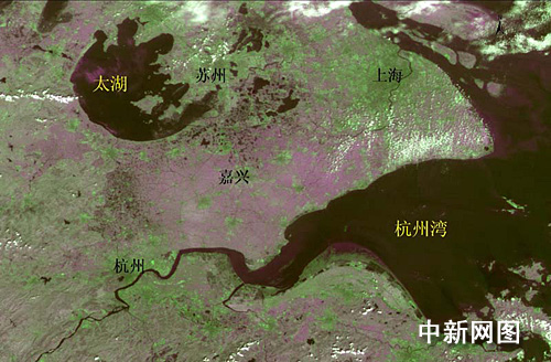 “环境减灾”A、B星拍摄并下传的长三角地区影像图。