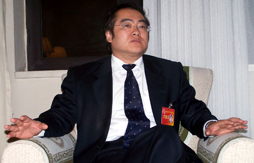 工会十五大代表、中华全国总工会民主管理部部长郭军接受记者采访。