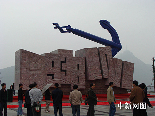 中新网宜昌10月22日电 (记者 刘涛) 宜昌大撤退纪念园22日举行开园仪式。该园主体雕塑长15米、高9米、厚3米,采用数字和铁锚组成,外形取船和长城之形。浮雕表现了当时的历史场面,突出了“宜昌大撤退”发生于1938年10月至11月的时间内涵。