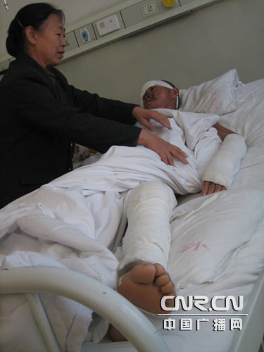 在位于五层、六层和一层观察室的病房里,记者还见到了多位受伤的村民。他们对打人者的描述基本一致,都是手持铁棍、身着蓝色工作服,上面写有中铁十七局的字样。据了解,中铁十七局集团公司京沪高速铁路土建工程一标段项目经理部四工区负责这一地区的铁路建设。