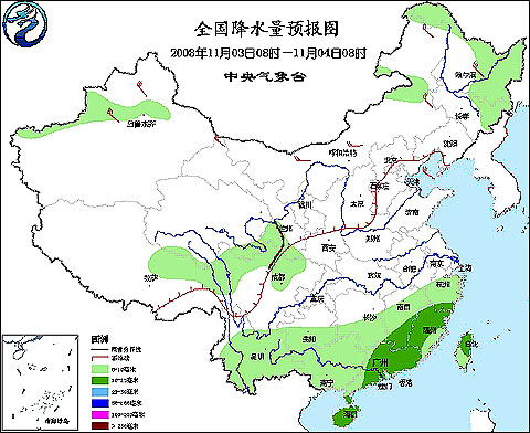 2008年11月3日8时—11月4日8时全国降水量预报图