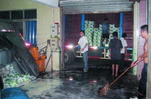“之前两天晚上都有人开车过来倒牛奶,而且一倒就是很多!”附近排洪站的一位工作人员告诉记者,这些白色的液体都是之前晚上被人倒下来的牛奶。这位工作人员说,之前的两天晚上,大概7点以后,就会有货车过来把成箱的牛奶扔到垃圾压缩站的机器里。11月1日晚上销毁得最多,先后有两辆货车过来,最大的一辆是载重8吨的,货箱里面装得满满都是盒装牛奶,有十几个工人把牛奶一箱箱从车上卸下直接投到垃圾站的压缩机里,那些压缩机运转的时候把牛奶箱压扁,里面的牛奶全部喷涌而出直接流到地面上,然后顺着下水道排到旁边的河涌里面。一开始他还觉得奇怪,一问才知道原来这些都是检测不合格的牛奶,有人专门拉过来进行集中销毁的。