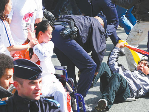 今年4月7日,上海残疾女青年金晶在巴黎参加奥运火炬传递时,受到一位“藏独”壮汉袭击。这一出人意料的事件,成为一个转折点——自拉萨“3·14事件”以来,中国首次占据了道德制高点,在世界公众舆论审判中,由被告变成了原告。
