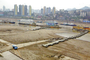 昨天中午12点,记者来到朝天门6码头,从护坡上的水位表看到,长江的水位达到175.1米。水手陈师傅说,“我在长江上跑了10多年,从来没有看到在秋冬季枯水期,还有如此高的水位。”