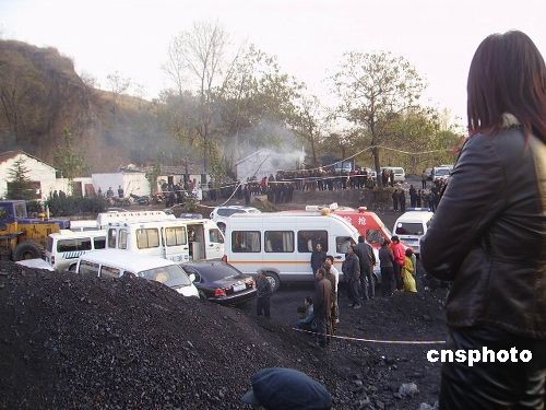 11月17日早上7点30分左右,河南郏县安良镇高门垌煤矿发生透水事故。 中新社发 侯伟胜 摄